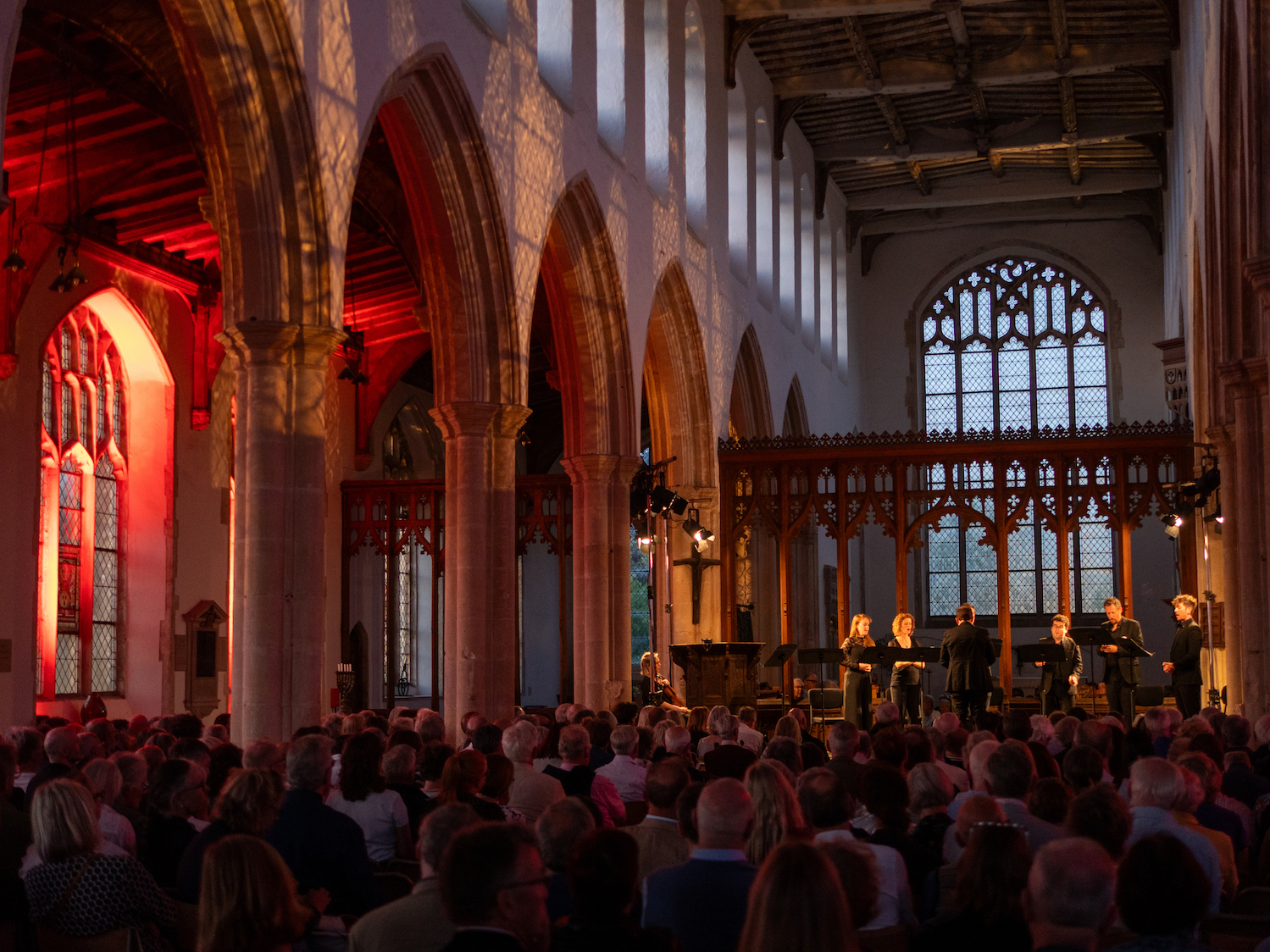 At Blythburgh church, as the sun set in lingering glory across the marshes, the vocal group EXAUDI and their conductor-composer James Weeks approached the transition between feelings, words and music in a more austere and enigmatic vein. In Book of Flames and Shadows, Weeks and his six singers braid Renaissance poetic texts on love by Petrarch and Pietro Bembo with Weeks’s own spare and fragmentary pieces, and an interwoven sequence of madrigals by the 16th-century composer Jacques Arcadelt. In Weeks’s work, with the excellent EXAUDI ensemble (pictured below by Marcus Roth) accompanied by Sophie Appleton’s violin, words and music break down into isolated cells and chunks – stray syllables, notes, phrases. At length the (relative) polyphonic richness of the Arcadelt madrigals gather these solitary elements into a nourishing plenitude of harmony and feeling. Immaculately executed, it made for a tantalising if gnomic experience – almost a creation myth for the post-Renaissance vocal music of love and longing that we now take for granted. But then Aldeburgh has the special ability to take its willing audience on adventurous – even exacting – musical journeys in settings as blessed as Blythburgh at sunset.In the Snape Maltings hall, the Festival’s opening splash arrived in the form of Colin Matthews’s Chekhov-inspired opera A Visit to Friends, with a libretto by William Boyd (the novelist’s first) based on a Chekhov story and his own play, Longing. Matthews and Boyd present an opera-within-an-opera, as a modern company rehearses a rediscovered piece supposedly written by Chekhov himself with a score by an unknown composer. In Rachel Hewer’s production, designed by Leanne Vandenbussche, a revolving stage swings us between the contemporary rehearsal room and the Russian country house of the “original” opera.