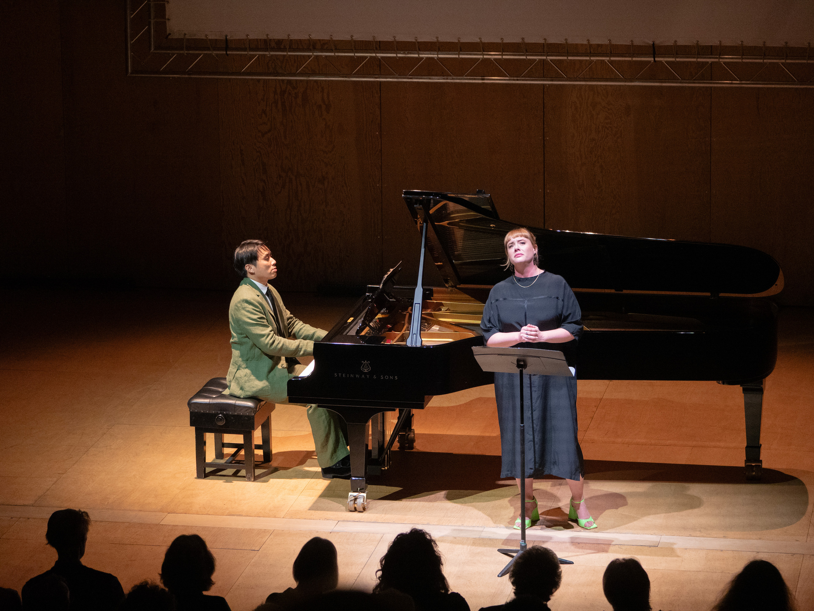 Shelley’s high-flying Romantic ideals may feel abstruse but, as the Festival’s opening weekend showed, music’s power not just to charm but to heal and reveal can have striking, and practical, real-world effects. Pianist George Xiaoyuan Fu and mezzo-soprano Lotte Betts-Dean prefaced their “Solitude with Schubert” recital in the Britten Studio at Snape Maltings with a film (by Matilda Hay and Rachel Clara Reed) that explored Fu’s collaboration with a walking group for bereaved people in Suffolk. In the shadow of his own father’s death, he played them Schubert; they spoke movingly of the emotions – not facile consolation, but mingled sadness and joy – the music stirred for them.On stage, Betts-Dean (pictured above with George Fu, by Marcus Roth) brought drama, fervour and a contemplative calm to Schubert[‘s cantata-length 1818 song Einsamkeit, with its torn protagonist who veers between longing for a busy public life and craving for the sweet retreat of solitude. As for Fu’s performance of the monumental D960 B flat sonata, it encompassed a rainbow span of expression, from the mingled serenity and dread of the opening through successive stages of tenderness, fury, grief and exultation. Fu revelled in breakneck switches of mood, equally at ease with legato melodic liquidity and smashing chordal declamations. When you play, Fu comments in the film, “you strip yourself bare of all shields”. For all his pianistic agility, this was a Schubert of naked vulnerability, unafraid of contradiction but also assured that clashing passions may eventually be “dissolved in sound”.
