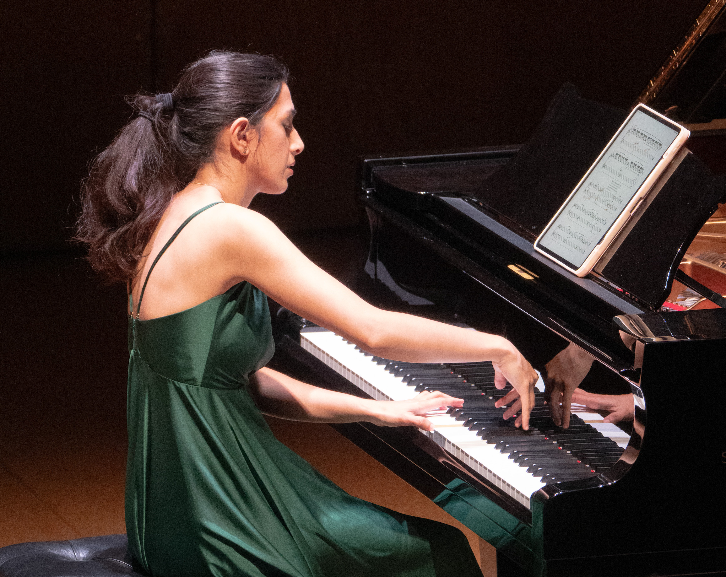 A gentler dialogue between past and present came in Mishka Rushdie Momen’s recital, Darknesse Visible. The young pianist interspersed Elizabethan keyboard pieces (from her album Reformation) with recent works by George Benjamin, Daniel Kidane and Thomas Adès: “Darknesse Visible”, his self-described “explosion” of a John Dowland song. Lucid, virtuosic but always sensitive to her material, Rushdie Momen (pictured below by Marcus Roth) played the earlier repertoire with exemplary grace, poise and power. Harpsichord purists, or any sceptics about the use of a modern piano in keyboard works of this period, should listen and take note. She avoids both pseudo-Romantic anachronism and an, equally false, prissy austerity of tone. Pieces such as John Bull’s brilliant 30 variations on the song “Walsingham”, or Byrd’s extraordinary showpiece “The Bells”, illustrated her argument. This music, beyond its technical extravagance, implicitly voices a nostalgia for a Catholic artistry quashed by the Protestant Reformation. In the evocation of keyboard canons and preludes past in Benjamin’s Shadowlines (also a dazzling compositional tour de force), we can perhaps also hear whispers of harmonic nostalgia alongside structural rigour. So this century-hopping programme might equally count as a journey into the music of grief and loss. Rushdie Momen too gave us elegiac echoes of a vanished world whose feelings and beliefs endure only because they have been “dissolved in sound”
