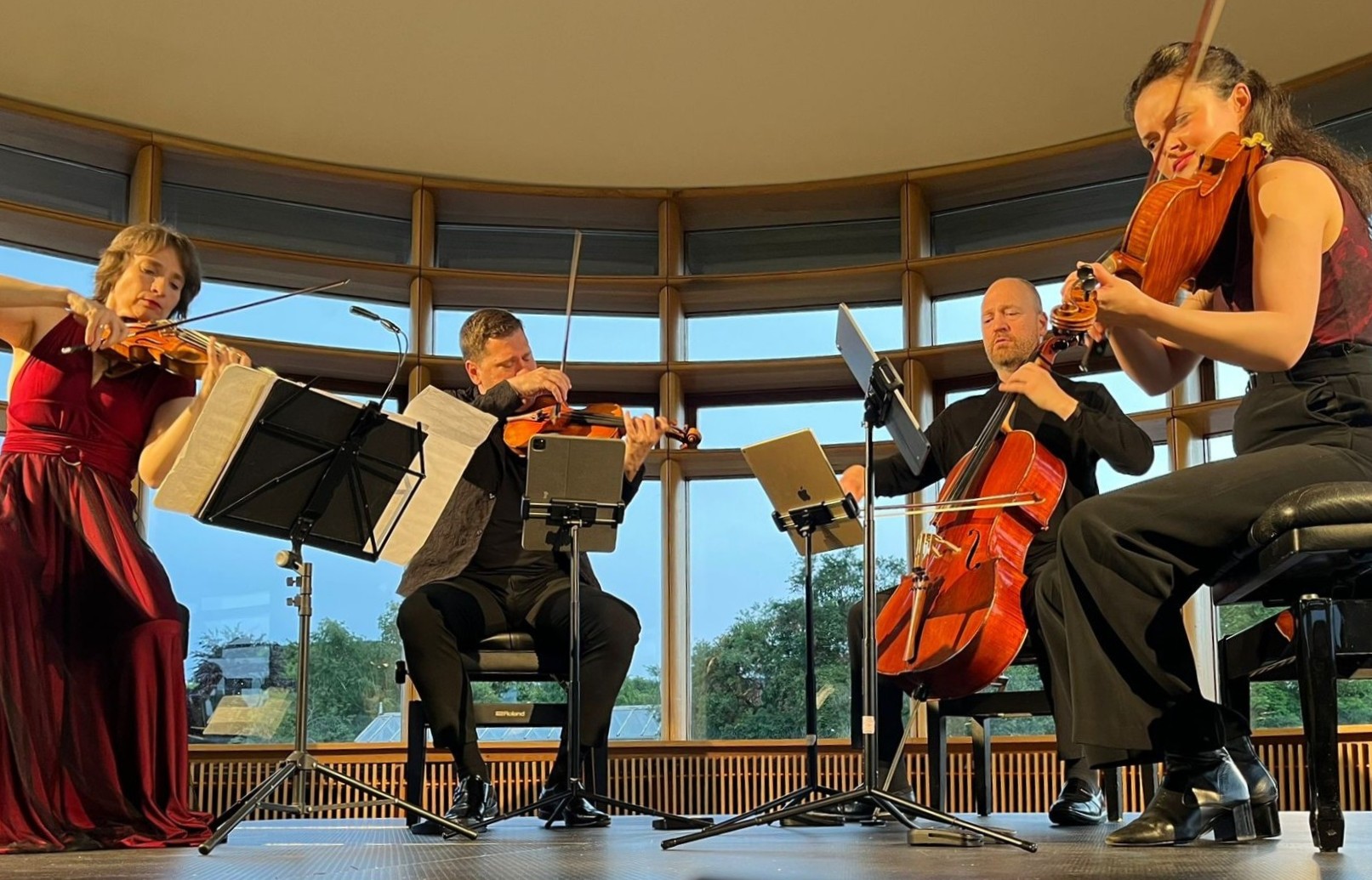 I missed the first two concerts of this year’s DICMF, arriving on the Friday, but both were greeted with superlatives by friends: the Irish debut of The Hermes Experiment in Dublin Castle’s Chapel Royal on Wednesday, and the revival in Rathfarnham Castle of last year’s hit, Bach’s Goldberg Variations on the accordions of Dermot Dunne and Martin Tourish – as experienced in the elegant 18th century Casino seating 32, one of the most exhilarating concerts I’ve ever attended. Strings in the Botanics seemed like a wonderful way to ease back into Dublin's summer life, though, and the Casals team (pictured above by Linda O'Shea Farren) excelled expectations. For the music of Boccherini and their compatriot Arriaga, they were able to engage the collection of Baroque and Classical period bows, a bonus of imaginative support from the Borletti-Buitoni Trust, through whose nurturing hands so many great musicians have passed. The beauty of Boccherini's Fifth Quartet lay in the natural-sounding ornamentions – birdsong at times to match the blackbirds in the Botanics – and a surprisingly stark, driven Menuetto. Arriaga's originality, which first struck me when the Scottish Chamber Orchestra presented his Symphony in D in the 1980s, informs the last of the three string quartets, his only works to be published in a much too short life (he died 10 days short of his 20th birthday), with striking invention especially in the finale. A hint of romantic melancholy here carried over in to the soulful Iberiana of Turina's La oración del torero, a perfect miniature to end an inventive first half.