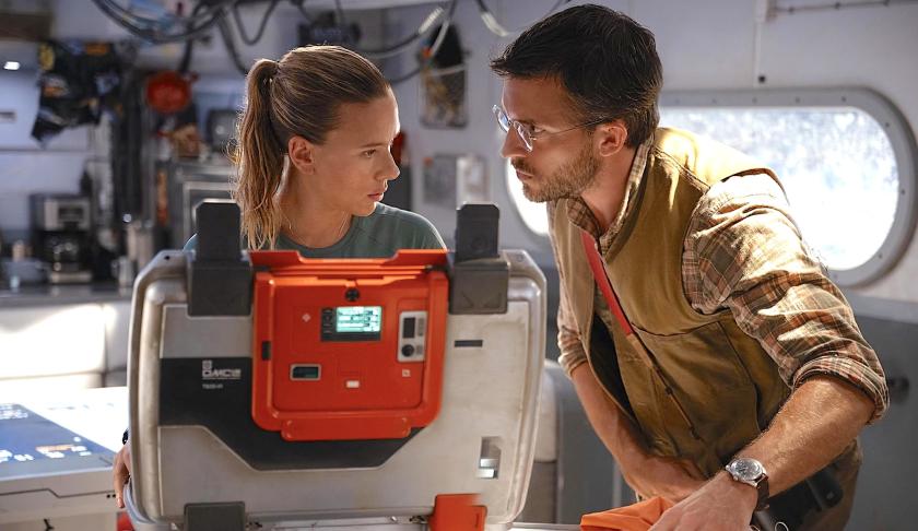 Film and animation technology has now advanced to the point where the fictional beasts are just as convincing as footage of “real” animals, so the variety of creatures on display (from small, slithery underwater ones to colossal leviathans that make the earth move for miles around) can successfully instil terror, horror etc in any number of ways. In a crowd-pleasingly Spielbergian touch, Delgado’s young daughter Isabella (Audrina Miranda) plays the wide-eyed, naive observer who can barely comprehend all the weirdness unfolding around her. She helps to give the action a human touch by adopting a cute baby dino she calls Delores, who fulfils the role of the family puppy.