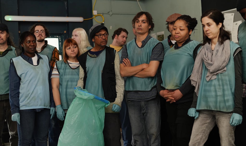 While there’s authenticity to the life on the streets (Mike’s wretched sleeping arrangements, his entreaties for cash from passers-by and interactions with street chums at a food kitchen) cinematographer Josée Deshaies (PassagesThe Beast) eschews grit and grunge for a clean, crisp, colourful palette, jagged camera movements for mostly static shots. The result, which embraces Anna Rhodes production design, particularly of the highly imaginative fantasy elements, is hugely attractive. Dillane’ nuanced and compelling performance, which won the best actor award at this year's Un Certain Regard section in Cannes, adds to the appealing quality of what, normally, would be a very hard watch. His Mike is intelligent, articulate, willing to stick up for himself, a natural bullshit detector who just keeps on trying (pictured above, prepping for another job, as a litter picker). He can be at turns sweet, funny, sly, vulnerable and dangerous, with a puppy dog charm that is seductive but also hard to read. And you simply can't take your eyes off him.