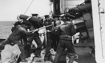 In contrast to this august occasion is the dinner the British sailors and blackened stokers grab during the decisive action near the Falklands. It’s a meal of mates laughing and joking as they wolf down soup and hunks of bread: the refurbished titles of the National Film Archive’s magnificent restoration reveal that Summers’s writers (who included John Buchan) were keen to leaven these tragic battles with working-class wit. When the Dad’s Army-like Falklands troops muster to defend their islands, one recruit finds he has forgotten his rifle and dashes home to fetch it. More poignantly, a young female Falklander takes a solitary walk to a promontory to observe the German ships approach.