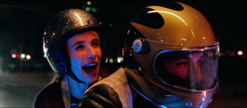 Vee's dramatic escape from her chrysalis of shy conformity arrives when she accepts a dare to "kiss a stranger for five seconds". The stranger she picks is a guy called Ian (Dave Franco), and their first encounter goes so well that the game's unseen controllers pair them off for a sequence of escalatingly crazy stunts, like "liberating" a daringly sparkly $5000 dress from Bergdorf Goodman, or Vee guiding Ian as he drives a speeding motorcycle through Manhattan while blindfolded (Vee and Ian go shopping, below).