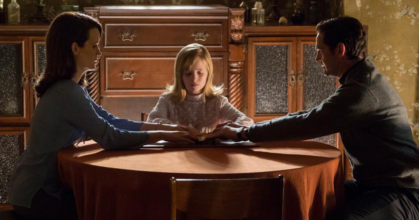 A prequel to Ouija (2014), Ouija: Origin of Evil zooms back to a mid-Sixties Los Angeles that's all miniskirts, white PVC boots, splendid chromed-up Chevrolets and Studebakers and clangy garage-band pop music. Our hosts are widowed mom Alice Zander (Elizabeth Reaser, of Twilight fame) and her daughters Lina (Annalise Basso) and Doris (Lulu Wilson).