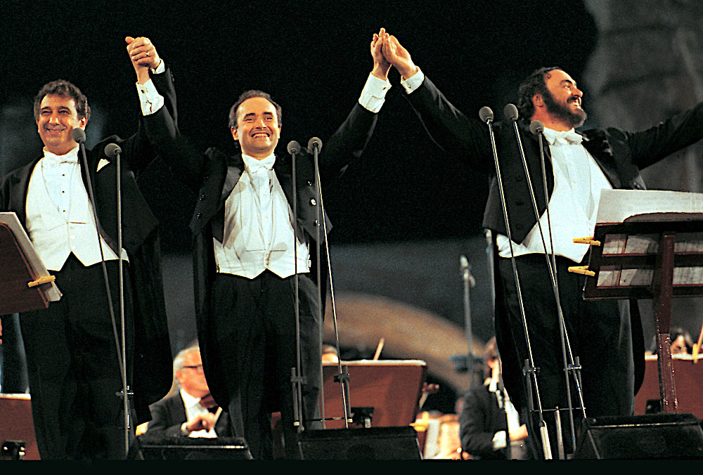 Modern technology and media meant Pavarotti really did bring opera to the masses, and here we see him doing it repeatedly. His hit single with "Nessun Dorma", used as the BBC's theme for the 1990 World Cup, became his calling card, and the World Cup concert by the Three Tenors in Rome powered the trio to global hugeness. “We didn’t realise we created The Beatles for senior citizens,” as their promoter Tibor Rudas remarked. Pavarotti’s magnetic aura fuelled his star-studded charity concerts in Modena (featuring the likes of Bono, Liza Minnelli, Sting and the Spice Girls) and won him the fan-worship of Princess Diana. But of course as Pavarotti’s commercial profile soared his credibility with opera critics waned, as he steadily narrowed his operatic repertoire and opted instead for lucrative recitals in arenas. The rise of Pavarotti, the outsized celebrity fund-raiser, could never compensate for the loss of one of the true greats of the operatic stage (Pavarotti with the Three Tenors, pictured below).