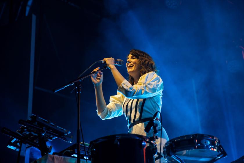 Drawing mainly on material from that album, Meredith and her band performed a rousing set at Edinburgh International Festival’s custom-built venue at Edinburgh Park. Their visceral energy was tangible from the outset, Meredith furiously banging time on a drum. Though her latest work is rooted very much in electronic music, with a lot of synthesised sound, she’s got a particularly interesting instrumental set up with her band – electric guitar, drumkit, cello and tuba all add a depth of colour to her bombastic tracks, with Meredith herself sometimes adding clarinet. Opening with soaring sirens screaming over a punchy drumbeat, the music is at once both angry and ambient. A slightly more relaxed track, "Moonmoons" for solo cello, features still, blurry cello lines over a twinkly synth part, but becomes more dark and foreboding as the piece moves on. "Paramore", the final track from Fibs, is full-on maximalism, with complex cross rhythms and a screaming guitar solo from Jack Ross.