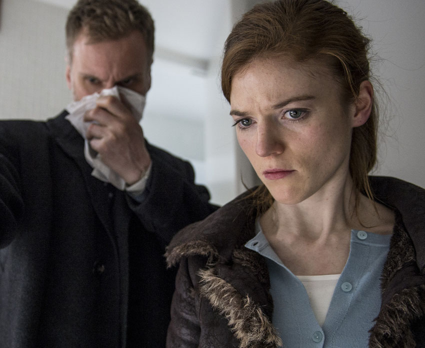 This time, writer Neil Cross opened by taking us to a clifftop near Beachy Head, where Luther gazed moodily out across the English Channel, evidently in the grip of an existential crisis, perhaps a hangover from the death of DS Ripley in series three. Mind you, he's almost always in the grip of an existential crisis. This time his musings were interrupted by a visit from DCI Bloom (Darren Boyd) and DS Lane (Rose Leslie) – both pictured below – who traipsed down to Luther's cliff-edge retirement cottage to bring him some bad news. It seemed that Alice Morgan, the perennial sparring partner with whom Luther is terminally fixated, had drowned following a road accident in Antwerp.