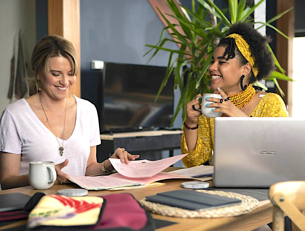 Gritty realism is emphatically not the objective here, as the show aims to mix a little leisurely sleuthing with ironic glances at issues and obsessions of contemporary life (though it’s set in Australia, it could be transplanted to almost anywhere). Thus, the Giroux case afforded space for some reflections on Alexa’s life as a single woman in middle age (“Paying for sex doesn’t make you lonely, it makes you practical,” she asserted), and there was some mild satire of “wokeness” when Alexa enlisted her researcher Madison (Ebony Vagulans, pictured above with Lawless) so they could pose as a lesbian couple pretending to be flat-hunting in the suspect’s building. “That’s sexuality appropriation!” Madison objected. “It’s workplace harassment!”