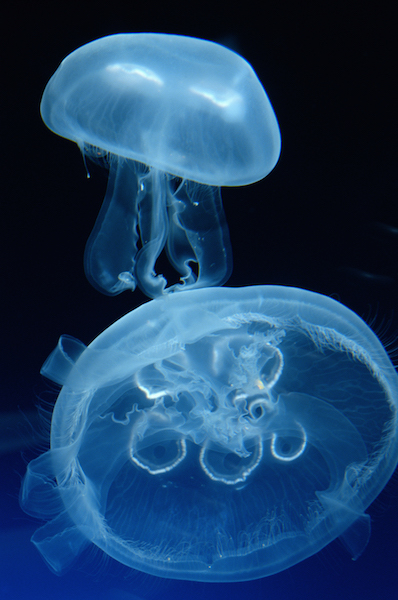 The theatre collective Rimini Protokoll encourages us to confront our imminent extinction. On film we see a tank full of languidly floating jellyfish (pictured above right: win, win). They flourish in the warming seas and, with diminishing fish stocks, there’s less competition for the plankton they feed on so their numbers are increasing dramatically. Humans are similarly multiplying – by 2050, according to the UN, there will be 9.7 billion of us – but unlike jellyfish, we require too much energy to adapt to climate change so, like the dinosaurs, our days are numbered. At the end of the presentation they invite us to quit the space with the words: “Your time is up; you will have to leave.”