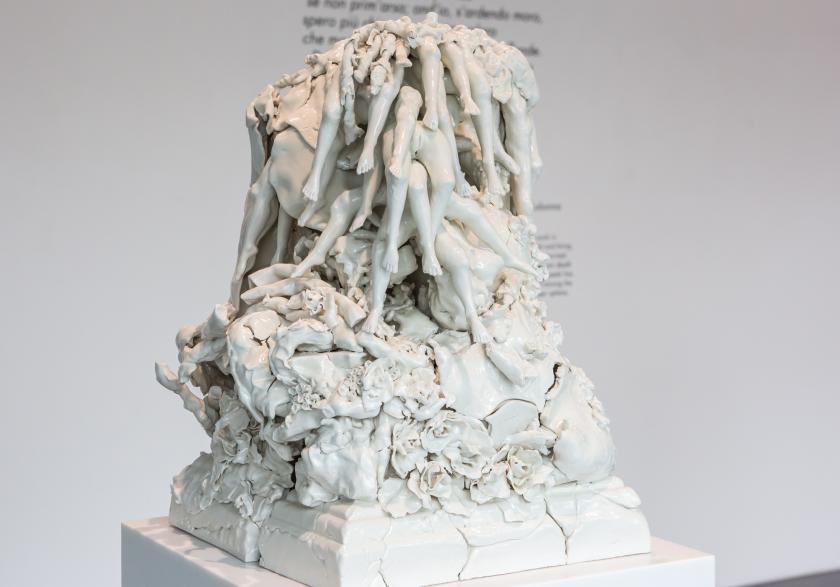 In an oft quoted moment of self-deprecation, WH Auden once described his own face as looking like “a wedding cake left out in the rain”. But the poet might have thought twice if confronted with the Porcelain confections of Rachel Kneebone. The London-based artist has brought three of her sculptures to the gallery of the University of Brighton; each one piles flora, vines and body parts onto a tomb-like plinth. They are as grand as wedding cakes, sugar white, and slick with a wet-looking glaze.