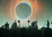 The body language fascinates. Mercury Rev’s frontman Jonathan Donahue could be playing a theramin. The arm movements fit the bill, yet the putative instrument is absent. At other points, his arms are outstretched, palms down. He might be projecting invisible rays in the manner of a silent-screen magician or, when he's in front of the band’s guitarist Grasshopper, absorbing invisible energies.