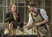 Once upon a time, there were two cultures, and they were at odds. A forested wilderness stretches between the kingdoms of Sealand and Lagobel, as we glean from the childishly-drawn, giant map that serves as a front cloth for the NT's new musical spectacular – directed by Marianne Elliot and opening in the Lyttelton last night. The map shows, on one side of the wilderness, Sealand’s coastal realm with winding rivers and a chateau bristling with turrets, all in shades of blue.