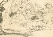 A rare drawing by Fra Angelico of The Dead Christ (c.1432-4) has areas which are marked and abraded, possibly through the act of kissing and touching (the points of contact, as the catalogue explains, "seem to correspond with the places where Mary Magdalene and John the Evangelist touch and kiss Christ’s body in the Descent from the Cross altarpiece" (the figure is repeated from Fra Angelico’s masterpiece in the Museo di San Marco in Florence).