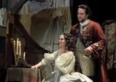 Those two historical figures, living in their clearly defined moment, are joined by another couple, less directly but somehow more organically connected to locus. Stalking the museum’s halls Sokurov gives us the memorable pairing of the Emperor Napoleon (Vincent Nemeth) – responsible, of course, for much of the enlargement of the Louvre’s collection, as well as its establishment as a public gallery – intoning periodically “C’est moi”; and the tricolour personification of France herself, Marianne (Johanna Korthals Altes), visually appropriated from Delacroix’s Liberty Leading the People, with her chant of Liberté, égalité, fraternité. In one scene, the two of them ponder the Mona Lisa: not the least advantage of having unfettered, after-hours access to a great space like this is the chance to see it without any other visitors. (Pictured below left: Johanna Korthals Altes, Vincent Nemeth.)
