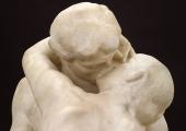 Brancusi carved his first version of The Kiss in 1907. It was a theme the Romanian-born sculptor returned to again and again, each time simplifying his depiction of the entwined lovers. Working briefly as Rodin’s assistant (though he soon left because “nothing grows under large trees”), Brancusi took the older artist’s naturalistic and erotically charged representation of the illicit lovers encountered in Dante’s Inferno to create a proto-Cubist, “primitivistic” masterpiece which is at once much sweeter and more innocent in tone and sentiment. Fisun Güner