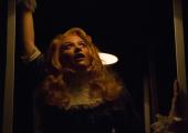 Paring the story down and dispensing with many of its most memorable characters – the Duchess, the Mock Turtle and the Cheshire Cat among them – the story becomes a disturbing duel between Alice and the White Rabbit. We first encounter the creature not hurrying across the lawn, but as a stuffed ornament in the corner of her cluttered bedroom, its protruding eyes and loudly clattering teeth suggesting an animated skull.