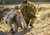 With its exuberant blood-spray, rambunctious dialogue and generous running time, Django Unchained is writer-director Quentin Tarantino’s first full foray into Westerns. Although it’s not a remake, it pays tribute to Sergio Corbucci’s 1966 Spaghetti Western Django, not only in name but in its use of the title song - which opens this movie as it opened that one - and in the fleeting appearance of the original's game star, Franco Nero (pictured below right).