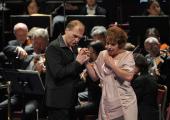 Still, despite the youthful antics and ever-changing stresses of the finale, beautifully underlined by Argerich, this is not the sort of work for which a standing ovation comes naturally. At least that got us the real gem – the Rondo in A, D951, of Schubert’s miraculous if tragic last year, four hands at one piano, with Barenboim taking the first part to Argerich’s second. Barenboim's runs and trills weren't always crystal clear, and the whole wasn't spacious enough to be my personal ideal – that would be the likes of Richter and his various duo partners – but still, it's one for the history books. The duo certainly communicated infinite delicacy and an alertness to the subtle shifts of mood in unmistakeable late Schubert (Argerich and Barenboim taking a bow, pictured above).
