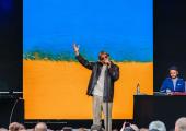 The gentleman in the centre of the picture above is Ivan Dorn. In Ukraine, he’s a pop star. A big pop star. His music, as he puts it on stage during the show opening Tallinn-Narva Music Week, is “pure Ukrainian house music.” Yep, there’s the bing-bong piano lines and cowbell beats of the pop end of house.