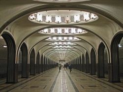 So off, eventually, they went on a proper return journey of research, three slightly dishevelled fortysomethings. They went armed with facts and figures that speak drily of what is indeed extraordinary: 2.5 billion travellers a year, speeds and frequency unknown, say, to Londoners, a network of around 180 stations, its number growing still year by year, in almost every range of architectural style, with new ones built though the harsh years of the Great Patriotic War and the depressed early 1990s alike, often at considerable cost in human casualties. It’s as if each year has left its own stamp on the system, which brushes up against the reality that now surrounds it; the marble halls still stand, the ideologies that inspired them now largely betrayed, leaving its passengers to negotiate spaces that once seemed sacred and have now morphed into something more battered and lived-in.