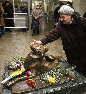 Commuters rub the guard-dog’s nose,