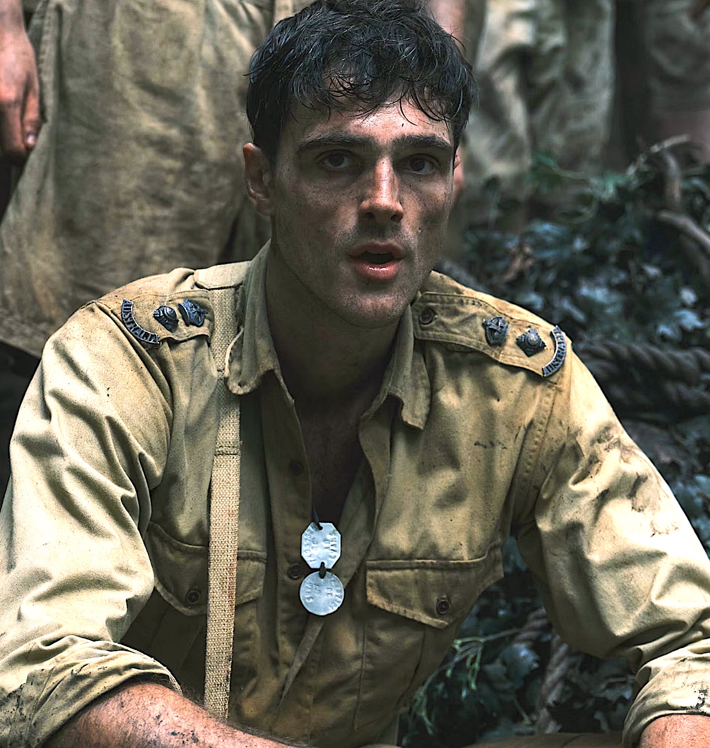 The book’s central character, Dorrigo Evans, duly takes centre-stage here. He’s played in his youth by Jacob Elordi (pictured left, also familiar as Elvis Presley in Sofia Coppola’s Priscilla), a young medic in the Australian army who becomes a kind of hero for his efforts to ease the sufferings of his fellow-prisoners. At the opposite end of a frequently-jumping timeline, the ageing Dorrigo is transformed into Ciaran Hinds (who’s excellent, though bears no physical resemblance to Elordi). He has become a distinguished surgeon who has settled into a comfortable if sterile life with his wife Ella (Heather Mitchell), though he’s having a listless affair on the side with Lynette (Essie Davis, the wife of a colleague.) Playing the young Ella who first takes his fancy is Olivia DeJonge, who coincidentally happened to play Priscilla Presley in Baz Lurhmann’s Elvis.