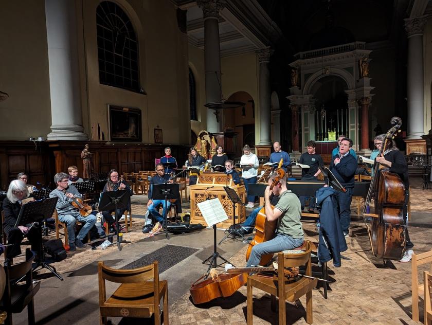 Mulroy’s vision of the piece isn’t noticeably radical, but its very naturalness made it as clear as it was gripping. Every so often a performer would stand to the front of the orchestra rather than amidst the other singers so as to underline the intensity of the emotion and to increase the connection with the audience, such as in the tenor aria of remorse after Peter’s denial, or the beautiful bass/choir chorale after Jesus’ death. Most of the time, however, the soloists were drawn from the small chorus, mostly singing one-to-a-part, reinforcing the sense of this as a community collectively grieving rather than giving an organised performance.