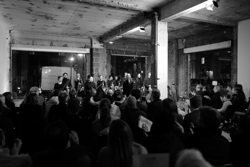 In an evening filled with "firsts" one of the many striking aspects was the effect the Anonimi Orchestra debut had on people walking past on the Marylebone Road. As we sat in the warehouse space of the Bomb Factory – with its exposed brick walls and large display windows – from time-to-time passers-by could be seen transfixed, gazing in at the vivacious ensemble bringing light to the January gloom.