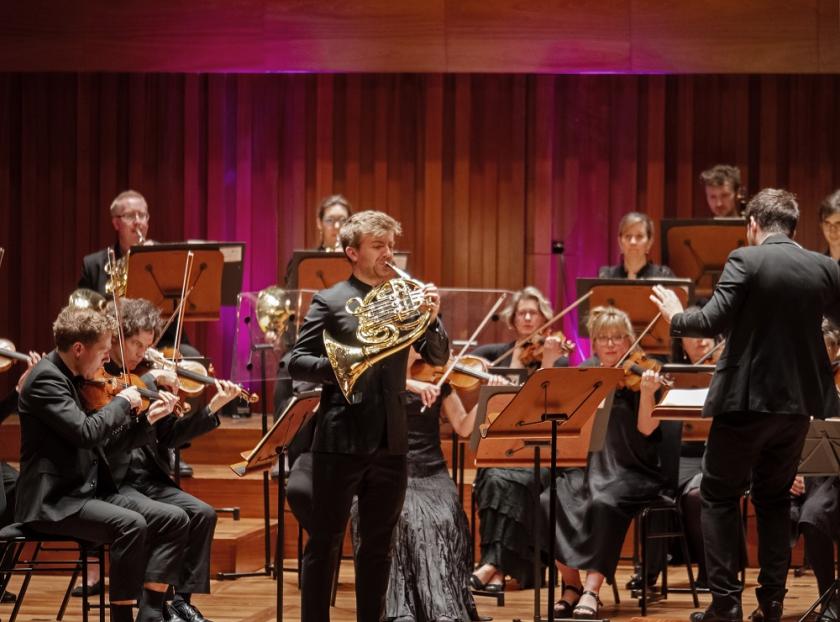 Huw Watkins' new concerto for Goldscheider is gratefully written for the horn and its outer movements feature healthy interplay wth the orchestral brass. The central movement also spotlights the Britten Sinfonia's great oboist Nicholas Daniel. Yet despite a few piquant twists for woodwind, it all feels a bit too comfortable - audience-friendly is no bad thing, but a bit more grit in the oyster, such as resonates in so many of Watkins' marvellous chamber works, wouldn't have gone amiss.