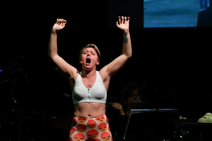But these were mere warm-ups to the main event: Laura Bowler, a triple-threat composer-performer-provocatrice (main picture, and above). She claimed the stage, muscled arms aloft, a disruptor-MC, issuing a stream of cycling invective over a roiling sea of sound. This is, after all, the woman who learnt to box with a professional for her last opera performance. FFF is about control in a values vacuum – "capitalist" and "socialist" were flung out as equal insults with expressionist extremity; a send-up of social media, as Bowler turns lip-smacking air-hostess, caught in the circularity of "likes"; she ends by mocking the very institutions that commissioned it. There’s no denying Bowler’s defiant charisma: a cross between Cathy Berberian and Pussy Riot. At one point she morphed into a human emoji. No wonder it was hard to recall all the music. She’s currently working with Philip Venables on a piece exploring rape culture. Watch this space.