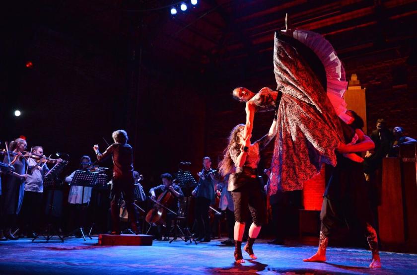 Nothing galvanises an audience quite like physical risk. As soprano Sarah Tynan rose on a hoop into the darkness, intoning the final words of "Départ" from Britten's song cycle Les Illuminations, you could almost hear her heart race. Beneath, a troupe of circus performers held the rope – and her life – in their hands.