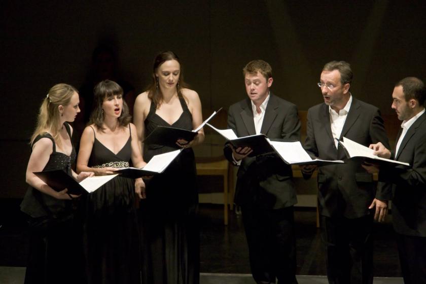 For poise and complete authority over the material it would be hard to imagine a more accomplished group. Nothing in their style is overdone, and if the result arguably sounds more calculated than the likes of I Fagiolini it also allows the listener more space to get in amongst Monteverdi’s episodes and make them their own. While tuning was dazzlingly, ear-achingly spot on, scrubbing the indecent writhings of the composer’s modulations till they come up naked and raw-clean, balance was a bit of an issue. Mezzo Marie Gautrot didn’t seem to be having the best of nights, smudged beneath the sopranos during the women’s voices numbers, and failing to make her mark within the full ensemble, but Agnew together with Sean Clayton and bass Lisandro Abadie drove the music dramatically, ever sensitive to the dance rhythms sublimated in the music.