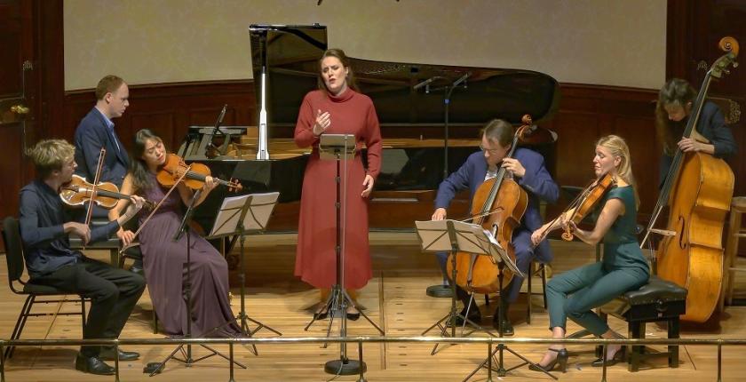 Effervescent in presentation as always, Alder told us that what felt like ages of pregnancy had addled her brain and made her programme a very short first half. We weren't complaining, but there was sheer delight, too, in what she'd added, Berlioz's "La Captive" for soprano, cello (John Myerscough of the Dorics) and piano. There could have been five more verses, so captivating were the refrains especially, where Alder showed no weakness in the lower register of a totally connected voice.