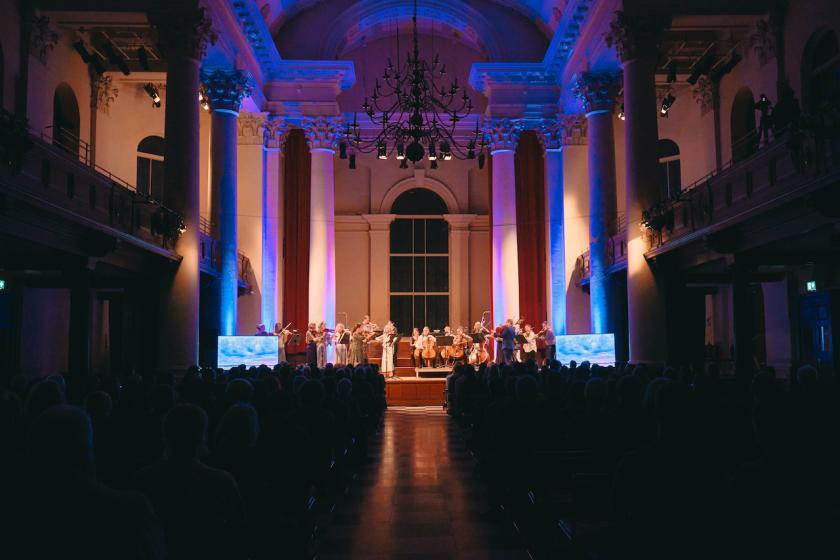 Finally we reached the Arctic, where we were introduced to the exquisitely named noctilucent cloud, another ice-crystal formation, which is distinctive for being formed right up in the mesosphere. Anna Thorvaldsdottir’s unearthly translucent Spectra (movements 4,5, and 6) – performed by Alexandra Wood, Ian Rathbone and Joely Koos – felt just right for evoking this phenomenon, which can only be observed at the poles. Once the notes had faded away, the evening ended with the same three instrumentalists playing the Aria from Bach’s Goldberg Variations with a luminous delicacy that evoked its geometric perfection. On the screens, projections of the planets made it feel as if we were gliding through the universe, an appropriately elevated finish to an evening that was uplifting in every way.
