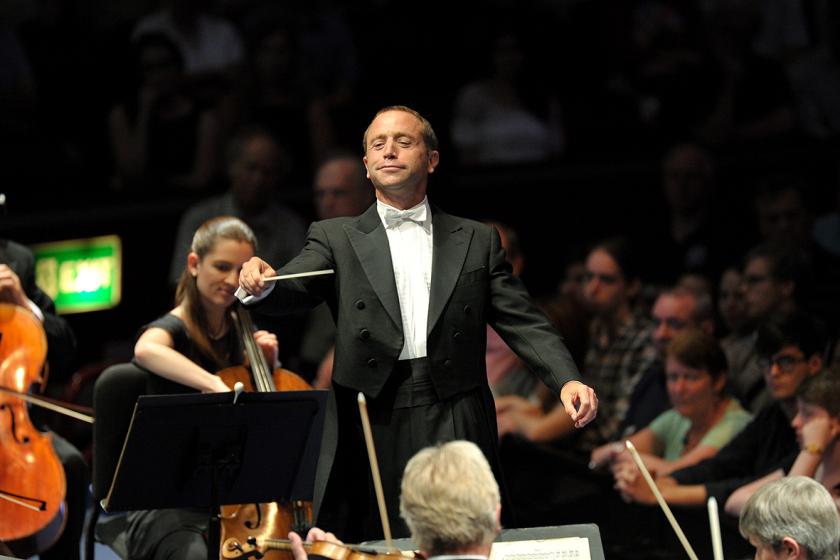 The work may not have a burning desire to communicate, but Matthew Trusler (pictured right with Wigglesworth) absolutely did. This was a dazzling Proms debut. The violin tone reaches right to the back of the hall where I was sitting; harmonics bite, phrasing lives, intonation never falters, the partnership with the orchestra was razor-sharp throughout. Next time, Walton, Britten or MacMillan, Mr Trusler, please.