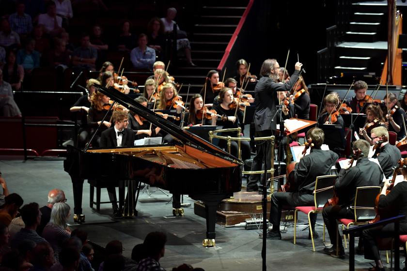 Kolesnikov can do everything this colossal masterpiece requires - the thunder and the double octaves, the flyaway transcendentalism, but above all the imaginative poetry which made his two huge cadenzas in the first movement coruscate with unique ebb and flow. He rightly kept a low profile in the one-off slow movement. Its extensive solo roles for violin and cello used to be cruelly cut in the pointless abbreviation of selfish piano virtuoso Alexander Ziloti, but their final trio-union with the pianist is worth waiting for, and here came out of a central section of genuine threat and distress. Here Ye Ye Xu and Findlay Spence were rightly in the limelight; I'm sure NYO leader Millie Ashton was equally good in her important solos the previous evening, but from my seat, and given an extra desk of first violinst, she was turned too far away to register.