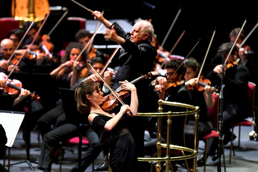The star turn was Lisa Batiashvili, who reprised the Tchaikovsky Violin Concerto she recently recorded with Barenboim and his Berlin Staatskapelle. Well, you can wait ages for a Georgian virtuoso to come along and then (as Batiashvili followed the previous evening’s Grieg concerto from Khatia Buniatishvili) two turn up at once. Barenboim, not the world’s most obvious Tchaikovsky devotee, had warmed us up with a hearty polonaise from Eugene Onegin that, after a slightly ragged start, hinted at the WEDO treats to come. Then Batiashvili entered to deliver a succulent but never sickly account of an old stager that (as with the Grieg) can suffer from its very familiarity. Batiashvili, who came to this work comparatively late, brings restraint and calm to the flowing grace of the opening allegro, with its tune that tantalises, only to vanish. Her wistful, cantabile tones never cloyed, while she attacked the cadenza with a thrilling, edge-of-the-seat sense of theatre that reminded you why, in 1878, this piece could shock as well as stir. The delicate, songbird lilt of the second-movement canzonetta glowed with quiet grace, and here WEDO made their presence pleasurably felt in the violin’s intimate exchanges with woodwinds.