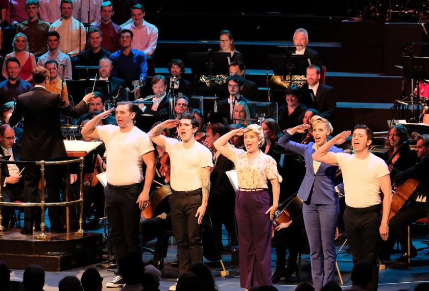 The London Symphony Orchestra, which performed an even fuller but not so taut and sometimes deliciously, occasionally distractingly starry concert version of the musical under Michael Tilson Thomas in 1992, was the real hub of the evening, transformed for all that one could hear into Wilson’s own band for the night. Vocal quality across the board provided the obvious hits – a whole stream of them, even a cheesy couple transformed by the wit of Betty Comden and Adolph Green’s lyrics – but the deep heart was in the dance sequences, amounting to nearly half the music It starts as pure Prokofiev pastiche for the Miss Turnstiles sequence but evolves into Bernstein's voice at its personal and sometimes even profound best..By paradoxically removing all but the slightest element of choreography that helped make the original a total work of art (high, popular, who in this case wants to label, especially when Jerome Robbins is your dance-master?), this streamlined performance made us listen to the purely orchestral music as a symphony, the 24-hour misadventures and inner life of Gabey the sailor (Wilson pictured below). Gabey also gets the soul in the song; Nathaniel Hackmann delivered “Lonely Town” with the right amount of Howard Keelesque warmth. Despite the monstrous Albert Hall miking which won’t have affected viewers on BBC Four, his companions, Nadim Naaman’s Ozzie and Fra Fee’s Chip, put across the patter and the sass. There was perfect vocal contrast between their two ladies, who wear the trousers in more ways than one and tend to get more of the limelight: operatic Celinde Schoenmaker as the sexed-up anthropologist Claire de Loone and show-stopper Louise Dearman’s taxi-driver Brunnhilde (Hildy) Esterhazy (though the raucous cab seduction number, “Come Up to My Place,” was visually masked from where I was sitting by the high-level cameraman in the Arena).