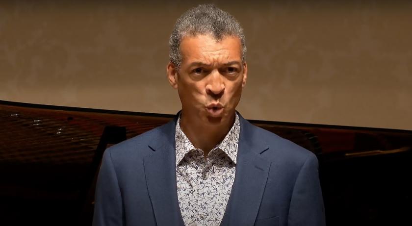 I'm not sure if it was the beauty of Roderick Williams’s velvety vocals, the poignant delight of seeing a live performance in a concert hall after all this time, or my generally unusual frame of mind during lockdown that caused me to immediately burst into tears at the opening bars of Schubert’s "Gretchen am spinnrade" ("Gretchen at the Spinning Wheel"), but the fact no other audience members were around to witness my impromptu blubbering was certainly one plus point to watching Williams and pianist Joseph Middleton’s Wigmore Hall recital at home on my laptop.