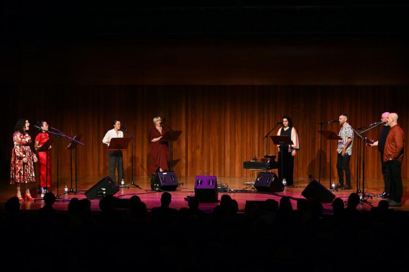Which is not a criticism: I like “Roomful mode”, and so, clearly did the sold-out audience there to hear them (who were as colourfully “alt” as the band themselves). But I could see it might annoy some people a little. The relaxed stage demeanour extends to casual clothing and standing with hands in pockets: I can hear an old teacher of mine hissing “Stand up straight!” But the standard of the singing was hard to fault, whether in the full-throated, brassy chordal style that is one of their trademarks, or the non-western singing styles the group have worked so hard to master (not without some accusations of cultural appropriation). The shout-out to the sound engineer Randall Squires was also well-earned: the singers are miked, and the sound production in the room an essential part of the experience.