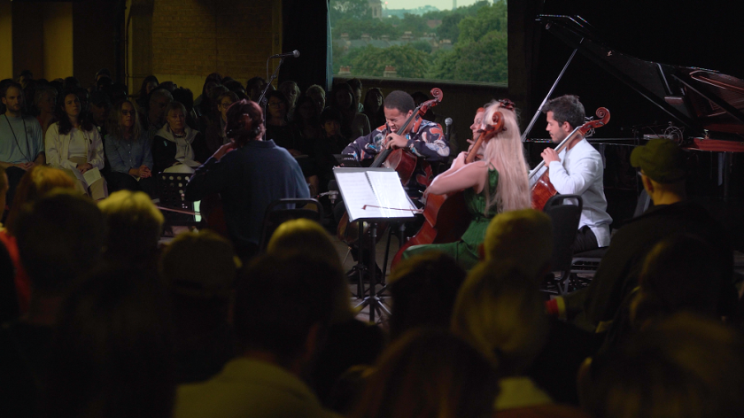 High cello parts among the five alongside Baker and Zac Abel (pictured above with Kanneh-Mason, van Gent and Ruisi) singing “Same Boat”, a catchy song composed in lockdown solidarity with Kanneh-Mason, gilded a very different lily, and I’m still earwormed by the final number, CHIC’s “Good Times”. The programme was finely calibrated, with a backbone of folksong to complement the more complex numbers, and while these are definitely the worst of times both at home and in the world at large, a dash of feelgood was also what the packed-to-capacity and diverse – hurrah! – audience needed on a late summer evening. All credit to Bold Tendencies, whose overall schedule has once again been a thing of wonder.