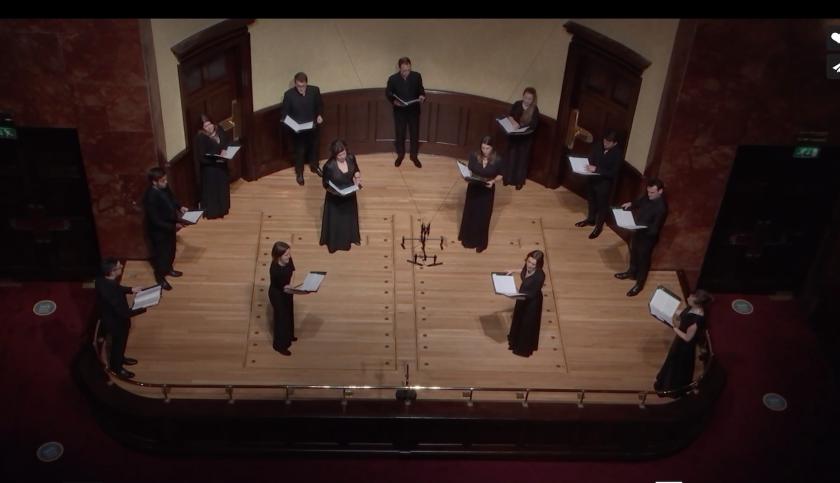 When, later, The Cardinall’s Musick took over the hall, the one conspicuous difference in their approach lay in Andrew Carwood’s presence as conductor. Stile Antico command such discipline and coherence in their sound that you could hardly claim that they ever (as it were) missed a beat. Pushed to define a distinction, you might say that Stile excel at a sort of collegiate consistency of tone whereas Carwood was able to steer his outfit [pictured below] through a slightly wider range of colours. And, whereas Stile gave us naked beauty without explanation, Carwood offered a useful, but not garrulous, commentary that sketched the background of his chosen pieces.