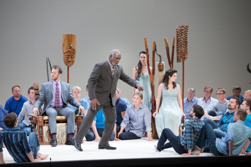 From the opening chorus of Oedipus the handsome Orphei Drängar male choir, in modern dress, were emoting every word in "Sellars semaphore". Well-honed from this summer’s production in Aix-en-Provence, they inhabited their parts with rare vibrancy and naturalness. When they pleaded, writhing and signing, with Oedipus (Joseph Kaiser) to deliver them from plague, their helplessness hit home. But when they launched into the fugue, we descended into a ludicrous orgy of heads-shoulders-knees-and-toes.