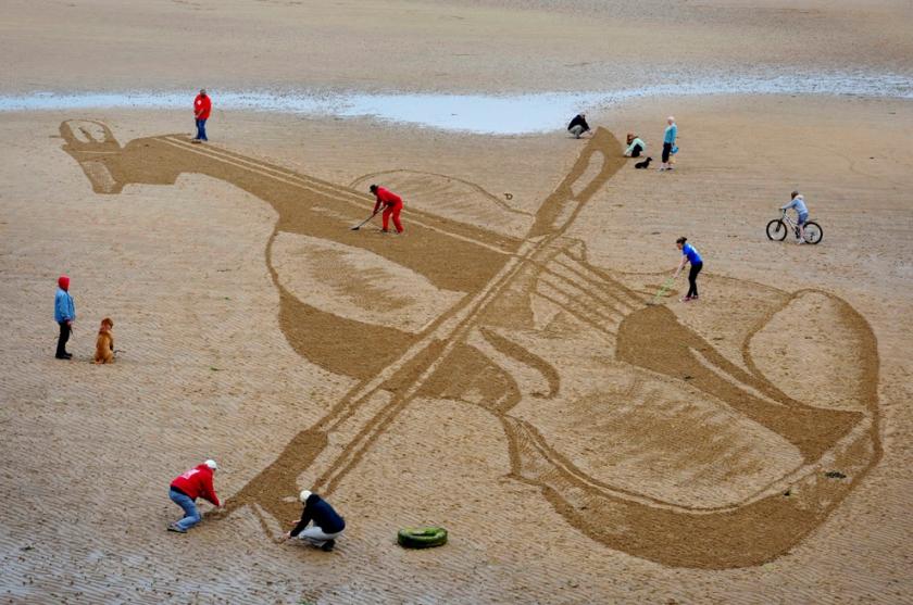 Then there were those magnificent period horns, so expertly handled by Anneke Scott and Joe Walters. They provided the next transition – to the grand finale in Cambo’s walled garden the following afternoon. The horn theme was hymned in sand by regular true artists Jamie Wardley and Claire Jamieson of Sand in Your Eye, who also served up the violin on Elie beach (five strings and a chinrest for a left-hander provoked a lot of fatuous chat, good for publicity, of course, as the annual artwork always is). Unfortunately the yearly sculpture on Crail's High Street didn’t quite go according to plan: a lifesize figure playing the horn collapsed just before the inauguration and had to be replaced in three hours by the instrument itself (pictured above), not bad under the circumstances.