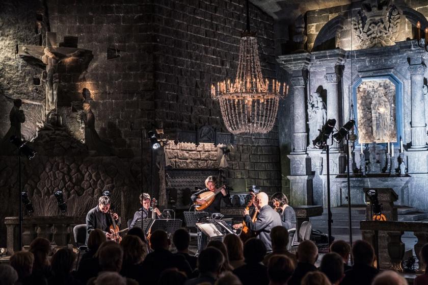 Fortunately that was not the case for the remainder of the weekend’s performances. Holy Saturday’s earlier concert took place in the most unusual venue of a chapel deep under the ground, in the Wieliczka Salt Mines, just a few miles southeast of Kraków. It's not for the claustrophobic; audience members are packed like sardines into a lift, which takes only 30 at a time, and are plunged into an eerie, dark, underground world.The chapel is certainly a striking place. Walls of charcoal grey, almost black salt have stunningly intricate biblical scenes carved into them, and the alcove is illuminated by a series of elaborate chandeliers. The subterranean chamber has a strange feel to it, but there’s no denying it makes for a wonderful acoustic.