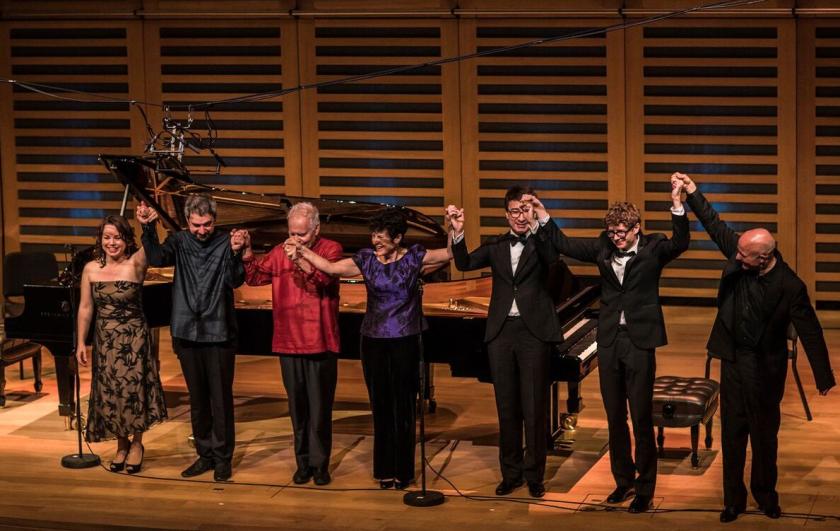The festival hosts came together to scintillate and thunder in Ades' Concert Paraphrase on Powder Her Face, though the essence is - as the Lisztian title perhaps suggests - curiously old-fashioned, nothing like as fresh-sounding as the Debussy of a century earlier, and the material over-extended. Still, the marathon kept on giving with the final visitor, Konstantin Lifshitz (pictured above with Apekisheva). He's not a pianist I've heard live before - he gave a big recital on festival Thursday which I now wish I'd heard - but on the evidence of the lovable finale with the equally transcendental Apiksheva, Rachmaninov's early Russian Rhapsody, Lifshitz would be a welcome soloist in any performance of Tchaikovsky's First Piano Concerto or "the Rach Three". Kudos to all: let's not wait a year for the next London Piano Festival to hear any of them in action again.