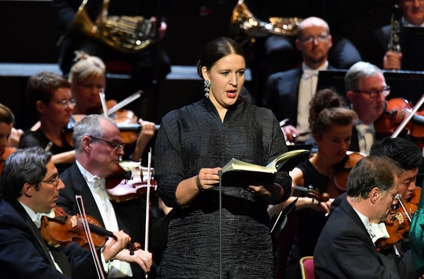 And what a team they were, capable of turning full beams - curiously only the bass, Hungarian Gábor Bretz, was a little soft-grained in this respect, but what a beautiful and emotional legato - but also, crucially, of blending softly with each other. The lion's share in that respect falls to the women, possessing two of the great voices of our time. American mezzo Jamie Barton (pictured right at the Proms by Chris Christodoulou) runs the gamut from hallowed pianissimos to powerful, true Verdian chest voice. Her involvement was always a joy to watch, even when she wasn't singing. It's taken me too long to get to hear the promised legend-in-the-making of Norwegian soprano Lise Davidsen, stepping in here for the wonderful Krassimira Stoyanova, but the rumours have not been exaggerated.