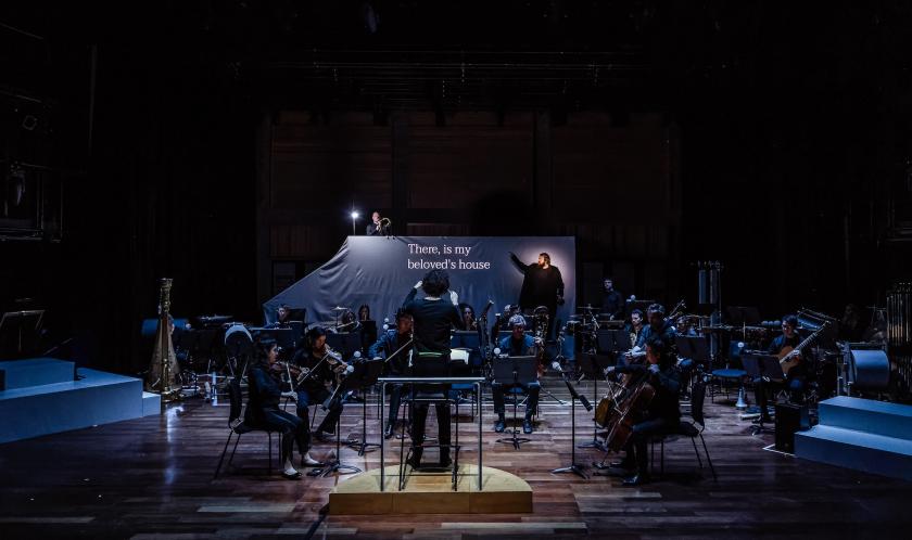 Meanwhile, Mitchell’s stage geography gives the anguished vocalist plenty of hard work to do. Clayton begins, in “Gute Nacht”, on a raised platform at the rear, descending among the players for later numbers, lying (or crawling) on the floor, even striding through the auditorium. The orchestra becomes the villagers who have spurned him, just as his beloved has; the players’ physical movements, as much as the sounds they make, entrench his isolation.