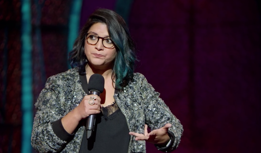 Mittal, who talks a mile a minute and is a very physically expressive comic, paints a vivid picture of Indian life and those in it – particularly her take-no-prisoners mother, who adopted her when Mittal was three. She has a fondness for wearing the icons of several religions, all at the same time, and wearing a camouflage jacket with multiple pockets that house all manner of objects.